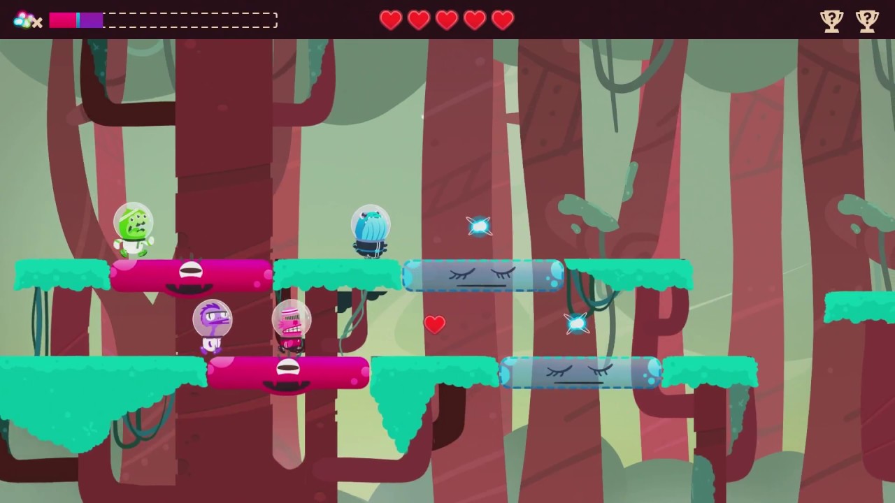 Если вы с другом хотите проверить навыки кооперации, то Joggernauts — игра для вас. Задача перед игроками стоит проще некуда: надо всего-то менять местами цветных бегунов. Вот только бегут они без остановки, а хитрая структура уровней требует предельной концентрации. Каждый участник группы (поддерживается до четырёх человек за одним монитором) должен вовремя прожимать кнопки прыжка и замены, иначе пострадает вся команда! Кто бы мог подумать, что «двухкнопочный» проект способен бросить такой серьёзный геймплейный вызов?